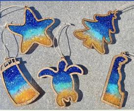 You will create 5 lovely resin ornaments with George Todd. These will make terrific gifts or keep for yourself.